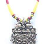 Antique Silver Oxidized Necklace with silver beads in between looks beautiful in yellow colored beads in a cotton thread. The antique silver oxidized encklace looks graceful in yellow thread. The base metal used for the necklace is sterling silver. The necklace is perfect to wear wit