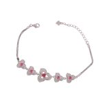 Cubic Zirconia flower red Stone bracelet on sterling silver. Cubic Zirconia Stones add sparkle to this bracelet and enhances the beauty of this cz jewelry. 925 Sterling Silver is used as metal.