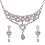 Cubic Zirconia Necklace Set with Stud Earring on sterling silver. The cz stones not only adds shine to it but also enhances the luxury of this jewelry. The metal used is 925 silver i.e silver in its purest form for any jewelry. Perfect to go with every occasion.