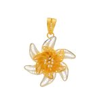 Filigree Two Tone Flower Pendant in Sterling Silver. Filigree Jewelry is handcrafted and is known for its delicate thread work. It is decorated with intricate latticework and the luxurious design of this jewelry is delivered with high polish finish. The base metal used is 925 sterling silver. The two tone color enhances the look of filigree jewelry and is achieved through gold polish.
