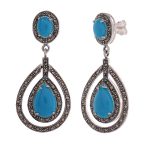 Marcasite Red Stone Hanging Earring in 925 Sterling Silver. Due to dark tone of marcasite gemstones, Marcasite looks striking in sterling silver. Marcasite Stones have a shimmering effect which adds to the subtle shine of sterling silver. The base metal used is sterling silver. Marcasite Stones gives a vintage effect to this jewelry.The design is classic and elegant and it fits for any occasion, daily or office wear.